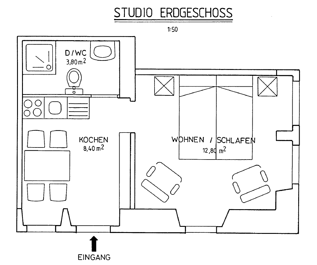 Studio de 25 m2 au rez-de chaussée, 2 lits, cuisine, toilette WC douche, télévision, avec jardin.