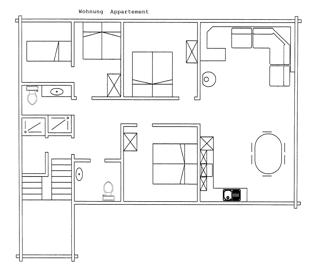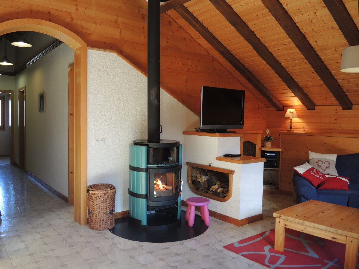 Appartement de 4 pièces au 3ème étage (85 m2), 3 chambres à coucher, grand salon salle à manger, poêle, cuisine avec lave-vaisselle, 2 toilettes WC douche, balcon, télévision, machine à café .